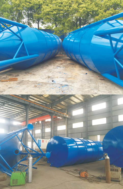 立式水泥筒倉市目前市場上最常用的粉料儲罐,使用時需要提前澆筑混凝土基礎(chǔ),排放鋼制預(yù)埋件,固定支腿,用鋼絲繩等分拉住桶頂。 容量 | 底腳尺寸 | 外形尺寸 | 板厚 | 重量 | 50噸-75噸 | 2050*2050 | 直徑2800*10000 | 5mm | 4.5-5.5噸 |